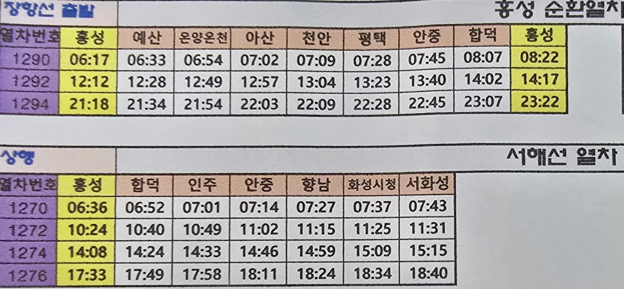 그리고 홍성역에서 용산역까지 약 2시간 12분이 소요되는 07시24분에 출발하는 새마을호 정차역은 삽교,예산,신례원,온양온천,아산,천안,평택,수원,영등포,용산역에 정차하고,금빛열차인 관광열차는 예산역,온양온천역,아산역,수원역,영등포역을 거쳐서 용산역에 도착하는데 소요시간은 약 1시간 57분이 소요된다.