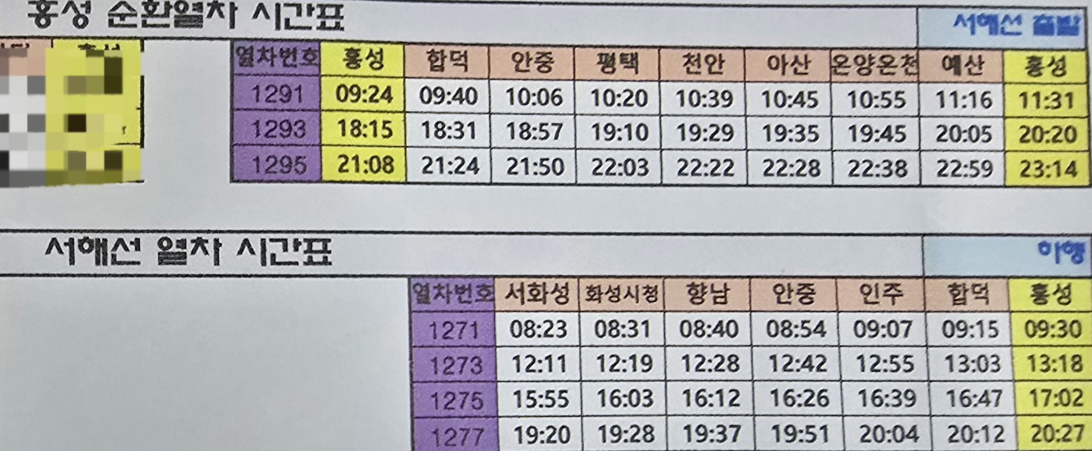 기차 시간표(2025년 9월 21일 기준)