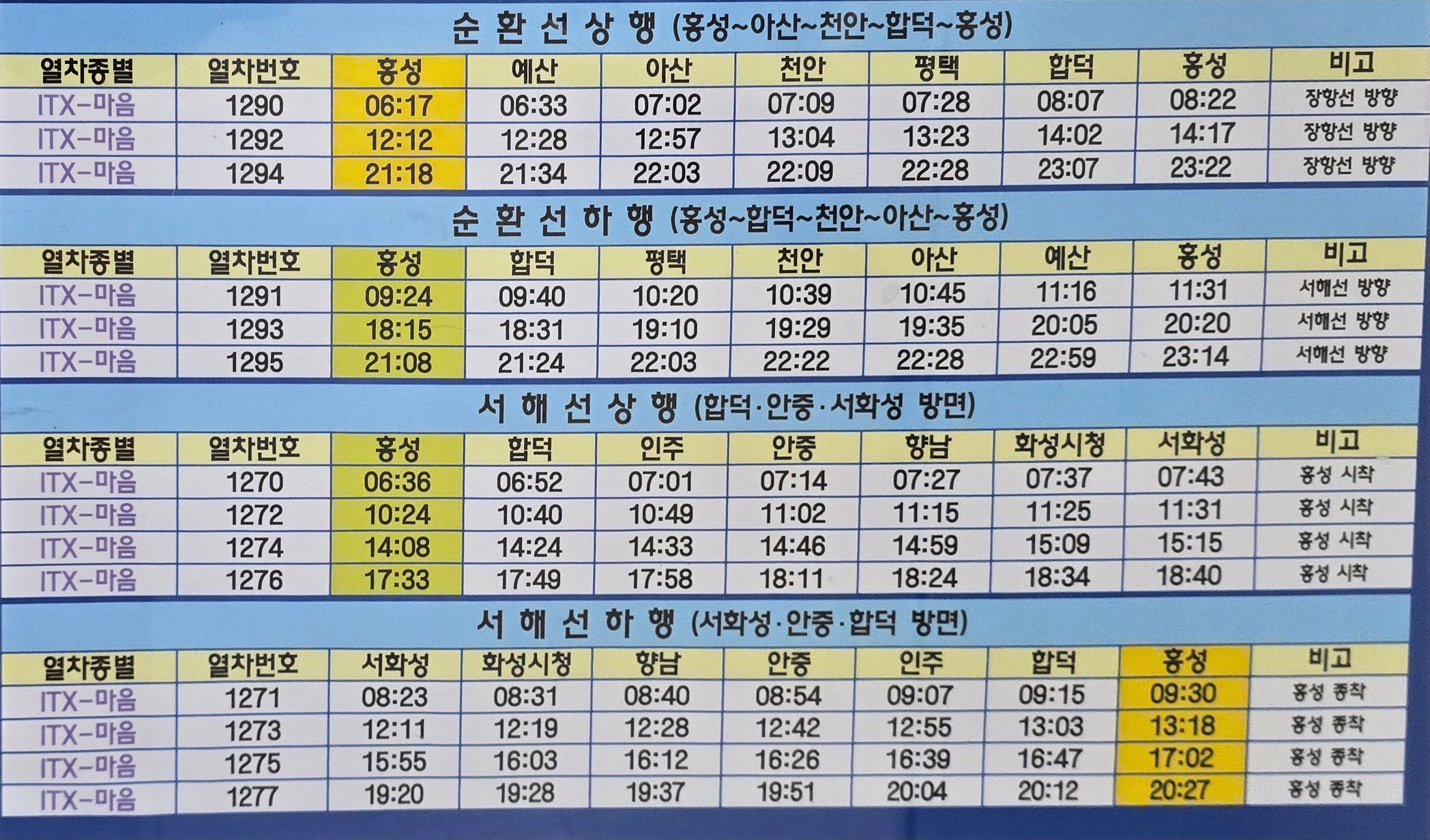또한 홍성역에서 19시37분에 출발하는 용산가는 열차는 ITX 마음 열차가 운행한다