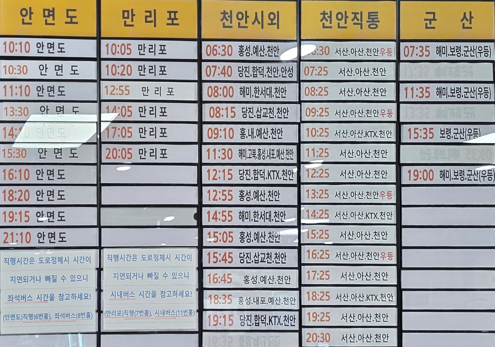 안면도가는 직행은 6번홈에서 승차하고,좌석버스는 8번홈을 이용하면 된다.