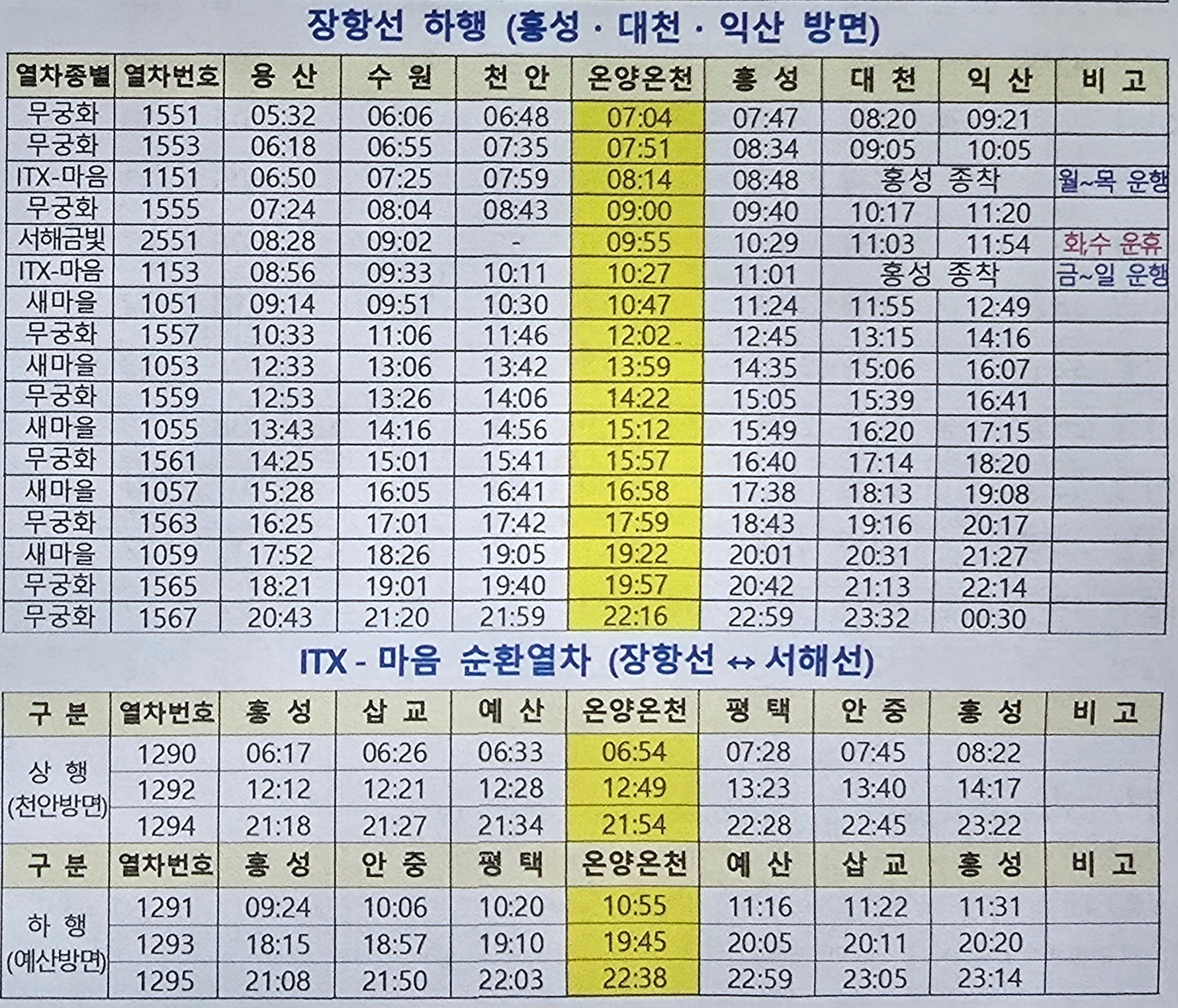 온양온천 기차 시간표