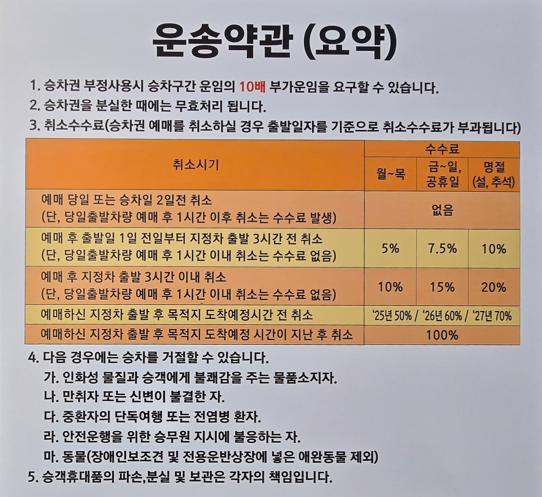 승차권 환불 규정