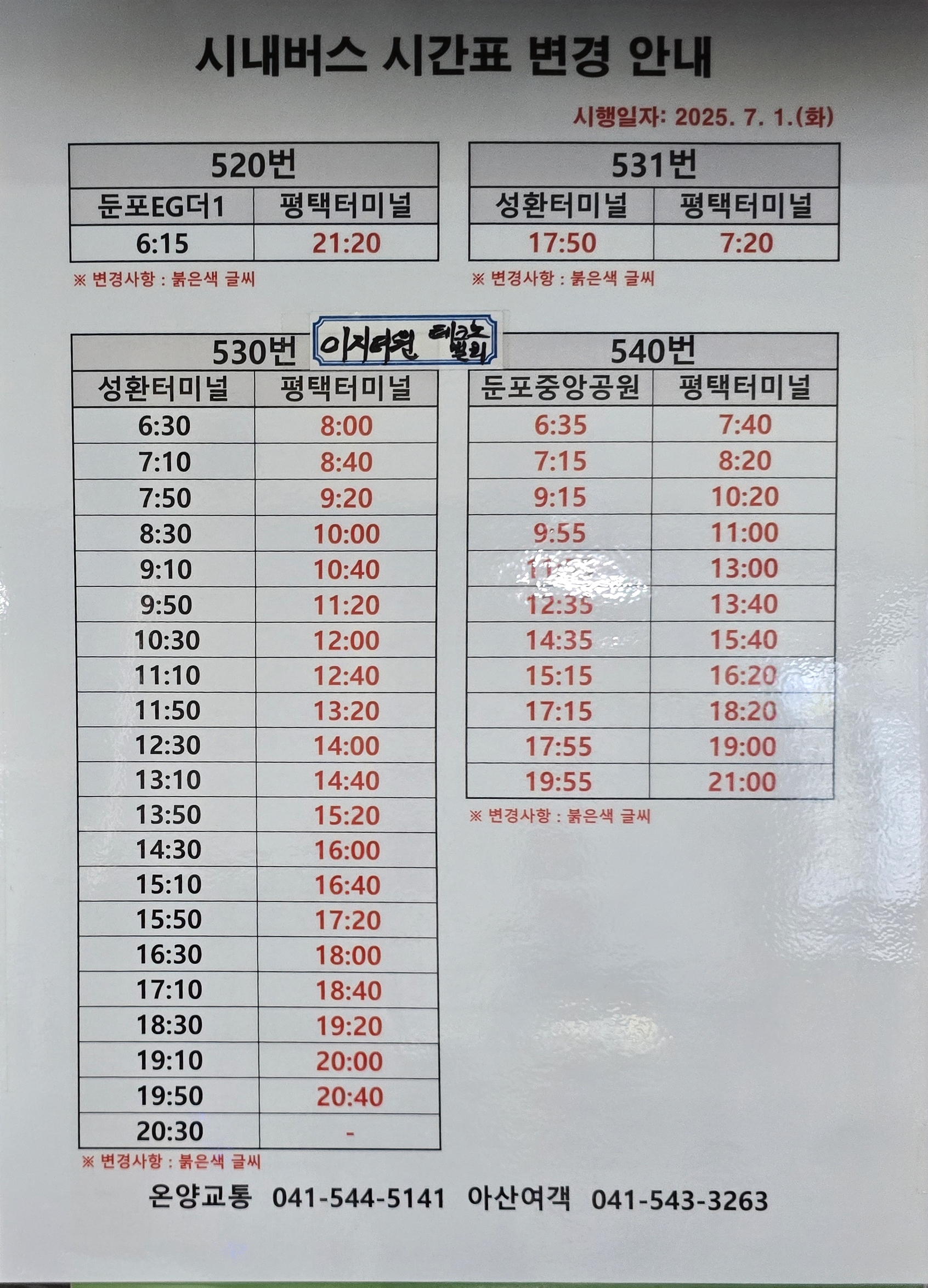 버스 이용시 운수사 사정으로 버스 운행 시간표가 변경될 수 있다.