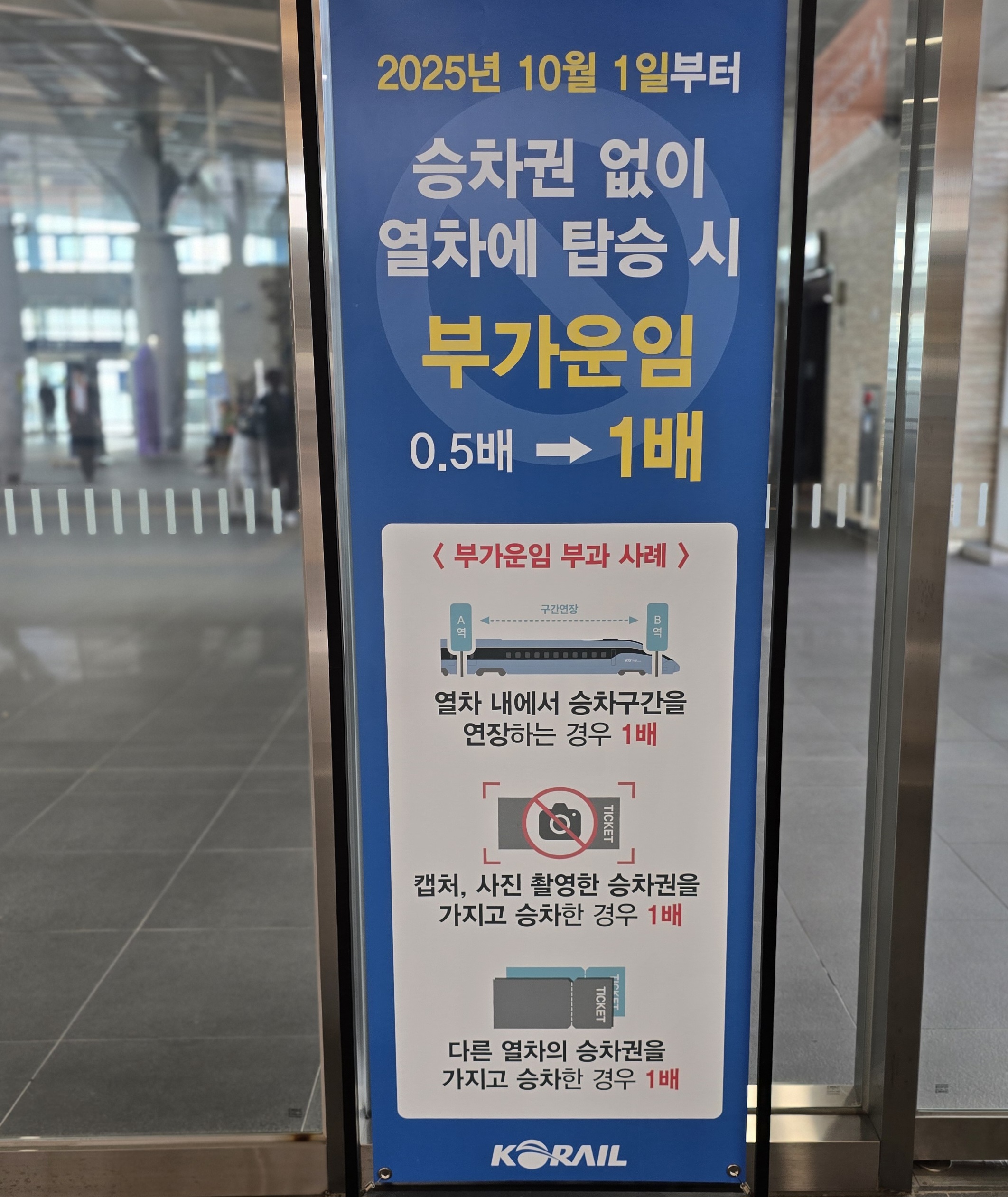 승차권없이 열차 승차시 2025년 10월 1일 부터는 부가운임이 기존에 승차권 운임의 0.5배에서 1배로 운임이 인상된다.