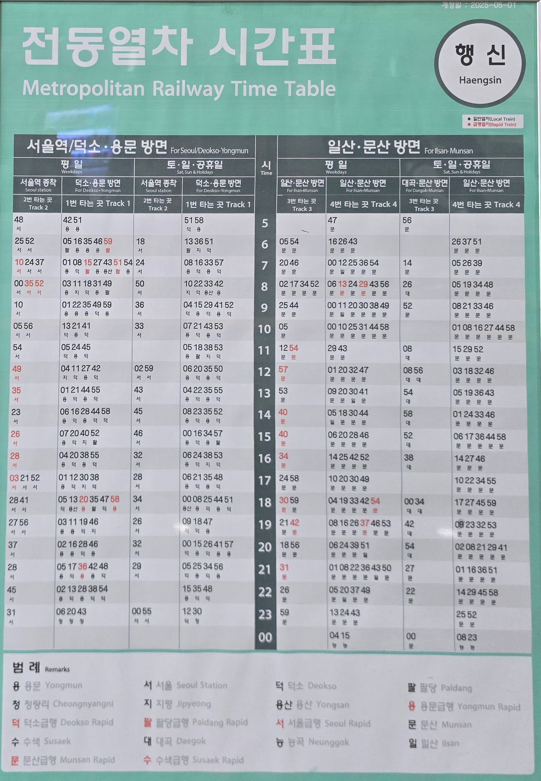 행신역에서 평일 일산이나 문산가는 경의선 전철 첫차는 4번 타는곳에서 05시47분에 운행한다.