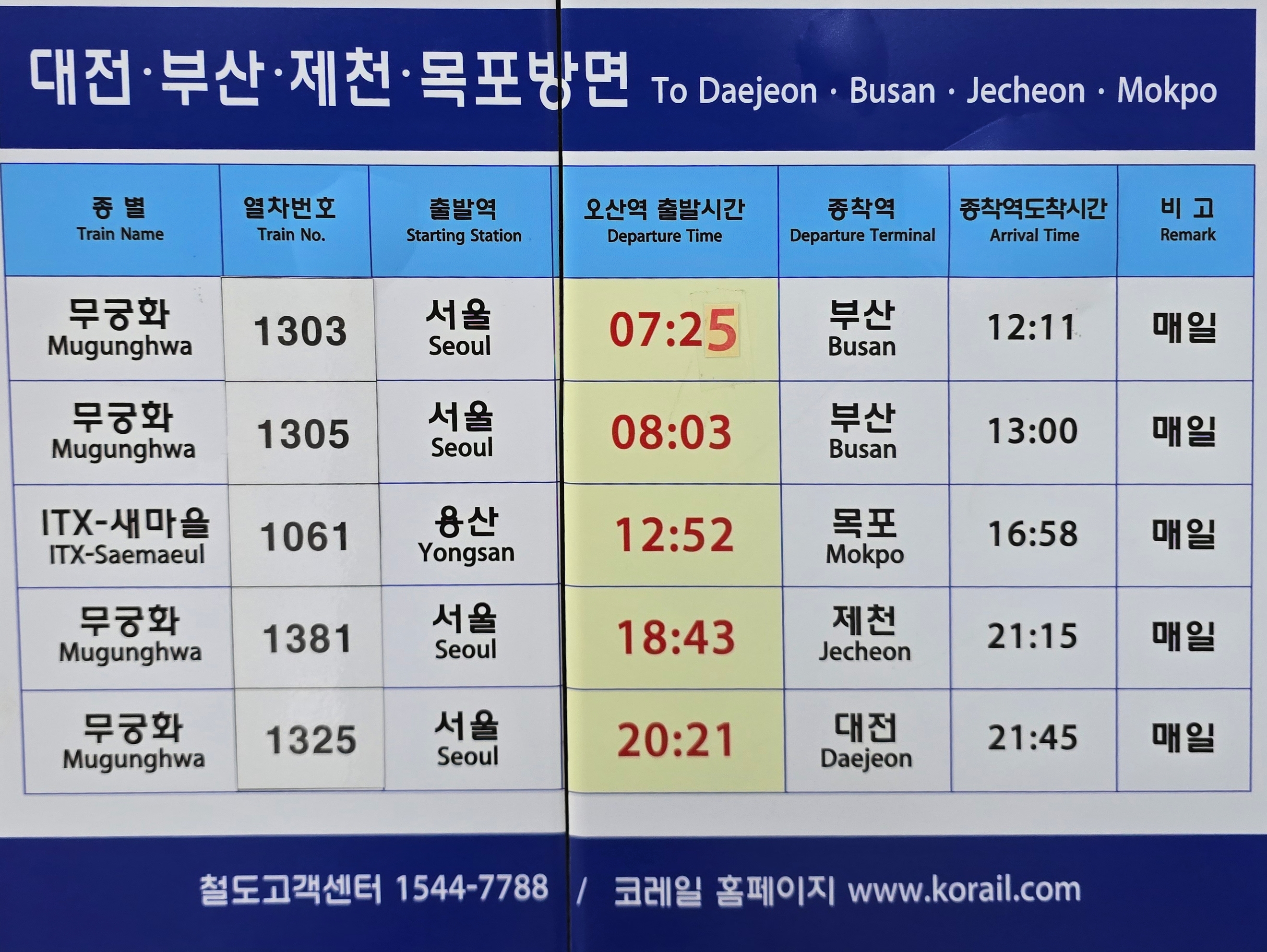 기차는 코레일 사정으로 열차 시간표가 변경될 수 있다.