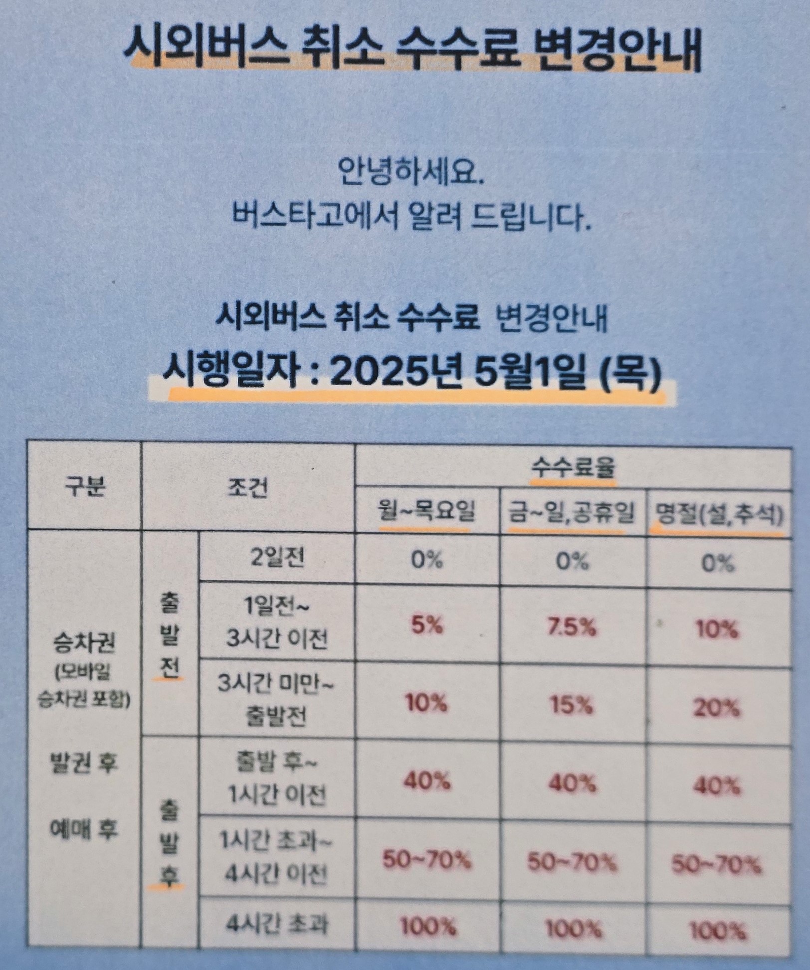 승차권을 예매하고 환불 할 경우에는 위약금 취소 수수료가 발생하는데 취소 수수료는 승차권 환불 시점에 따라 다르게 적용된다.