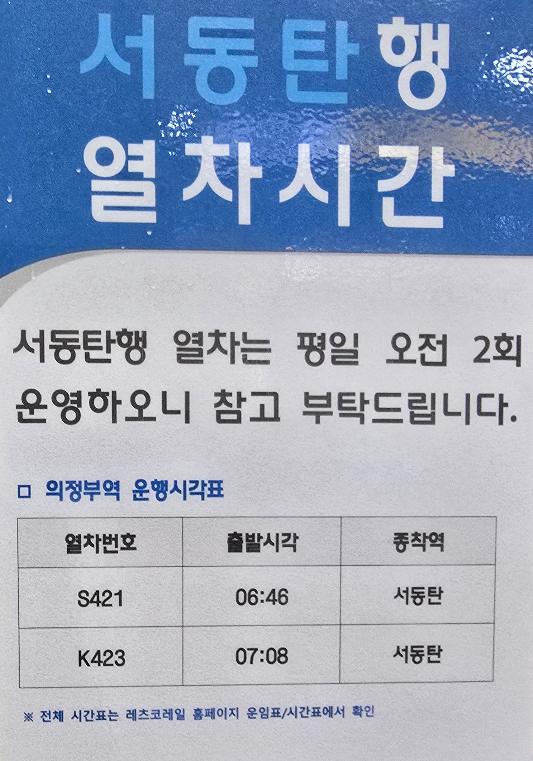 그리고 의정부역에서 2025년 10월23일 현재 서동탄행 전철이 하루에 2회 운행하고 있다.