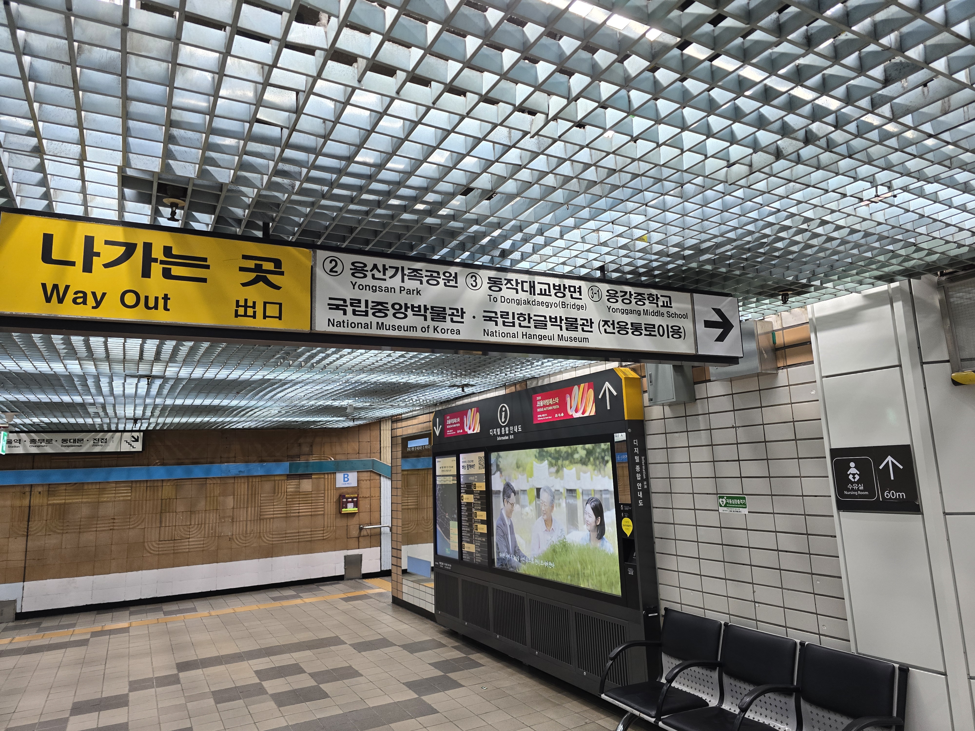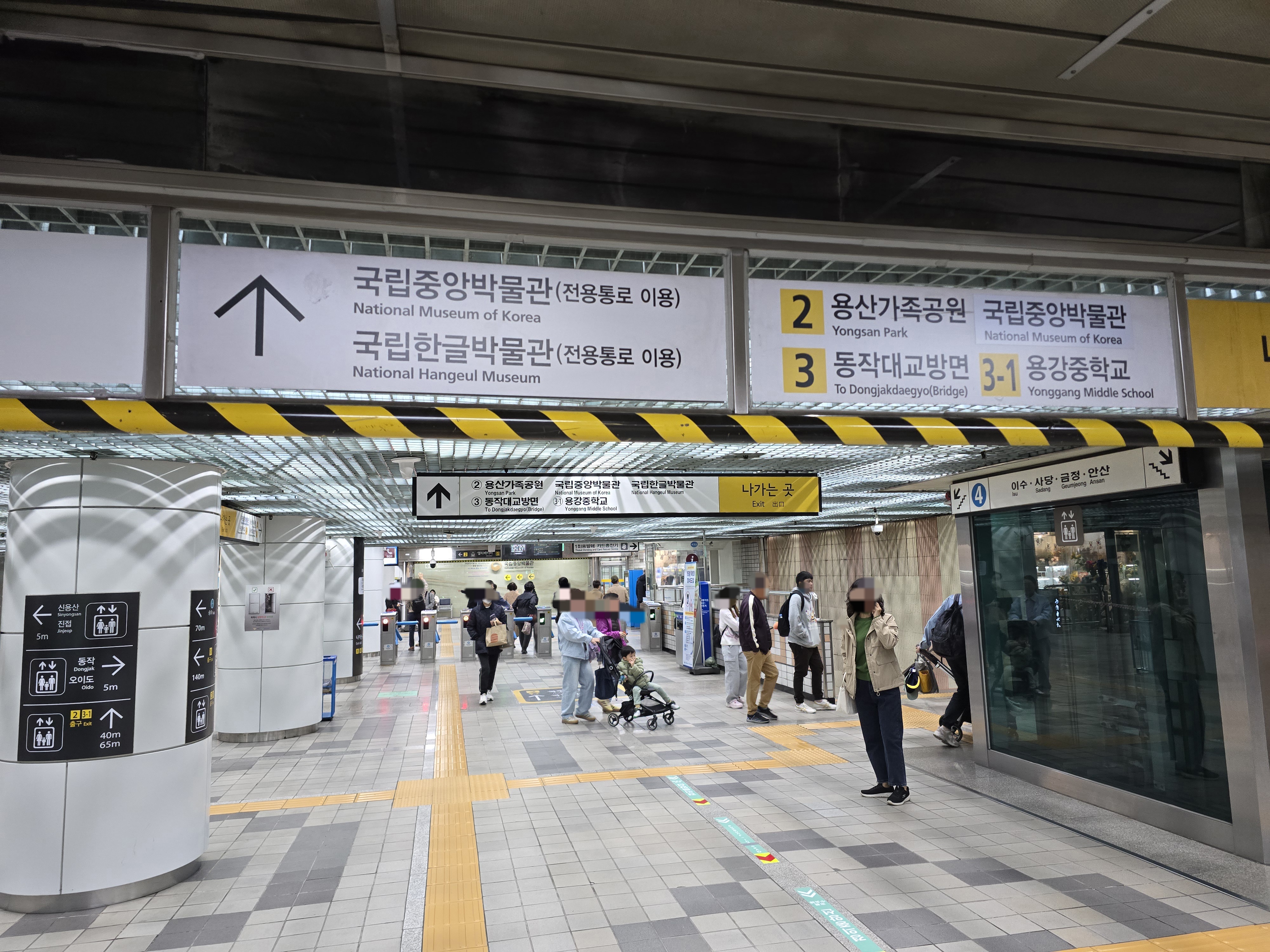지하철을 이용하여 박물관가는 방법은 경의 중앙선 이촌역이나 지하철 4호선 이촌역에서 하차하여 국립중앙박물관가는 전용통로로 이동하면 된다.