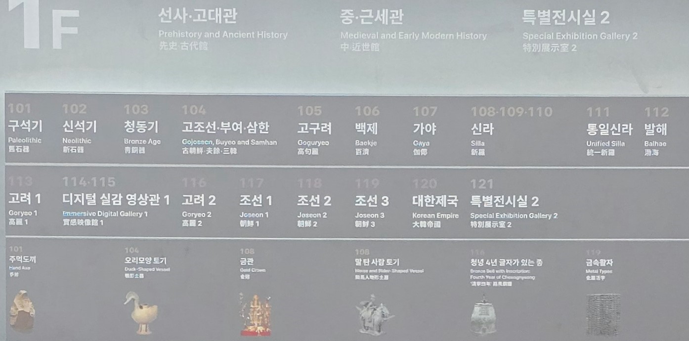 ‘용산박물관’으로 불리기도 하는 국립중앙박물관 상설전시관은 3층 건물로 1층은 선사·고대관과 중·근세관 유물을 접할 수 있다.