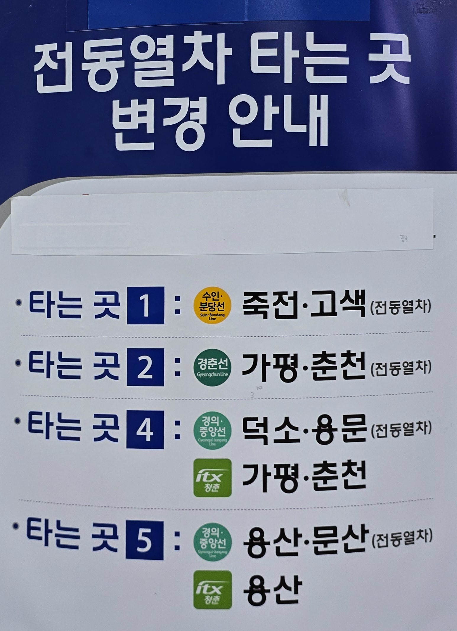 춘천 방면 ITX 청춘열차