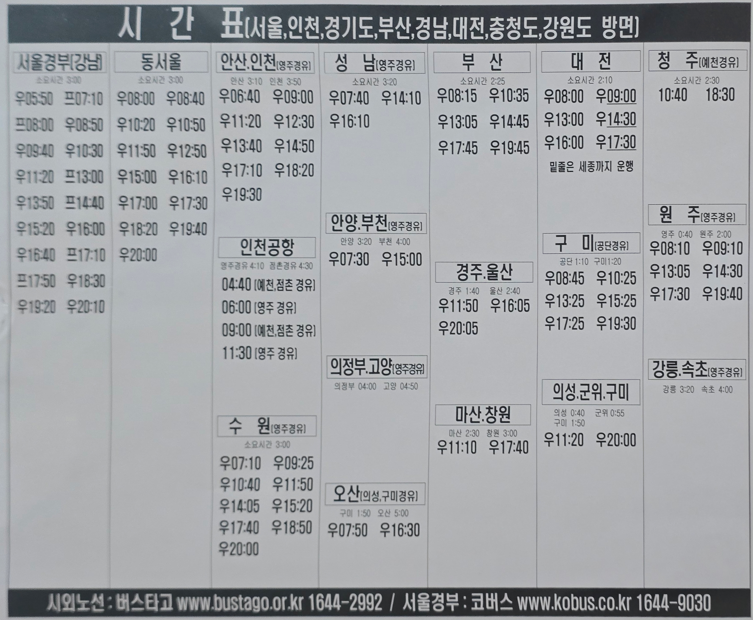 고속버스 시간표☜