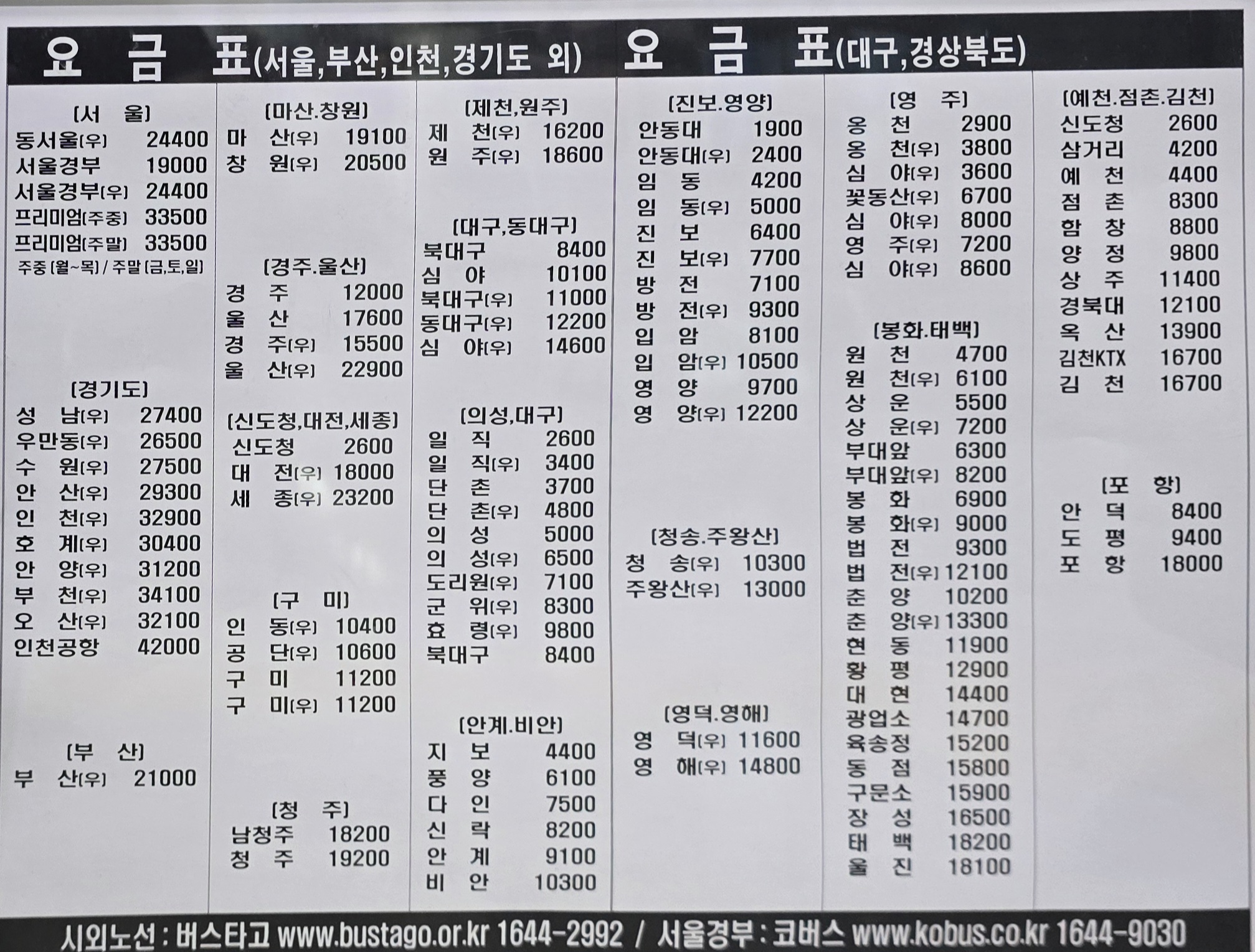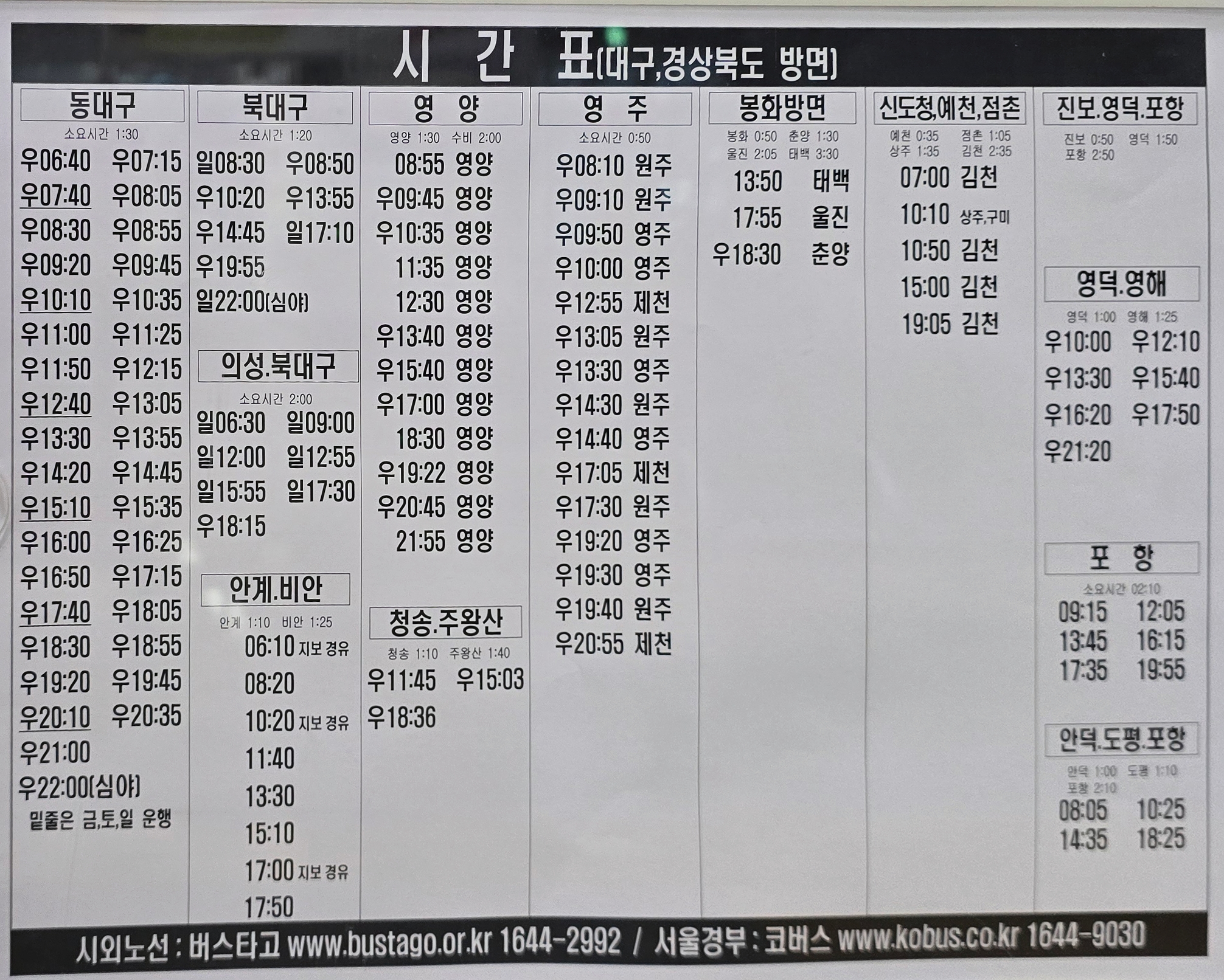 그리고 안동에서 북대구가는 버스 중에서 11시35분,12시30분,21시55분에 출발하는 버스는 우등버스로 변경되어 운행된다.
