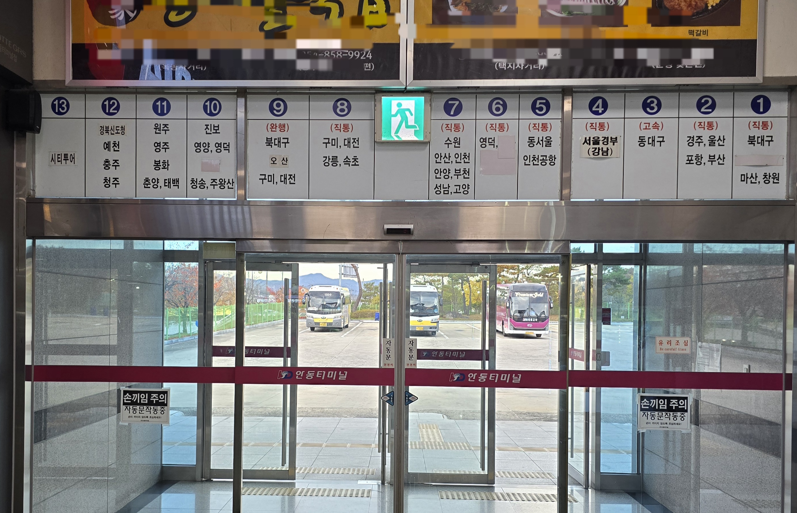 안동터미널은 매표창구가 정상적으로 운영되고 있으며,무인 발매기로도 승차권 발권이 가능하다.