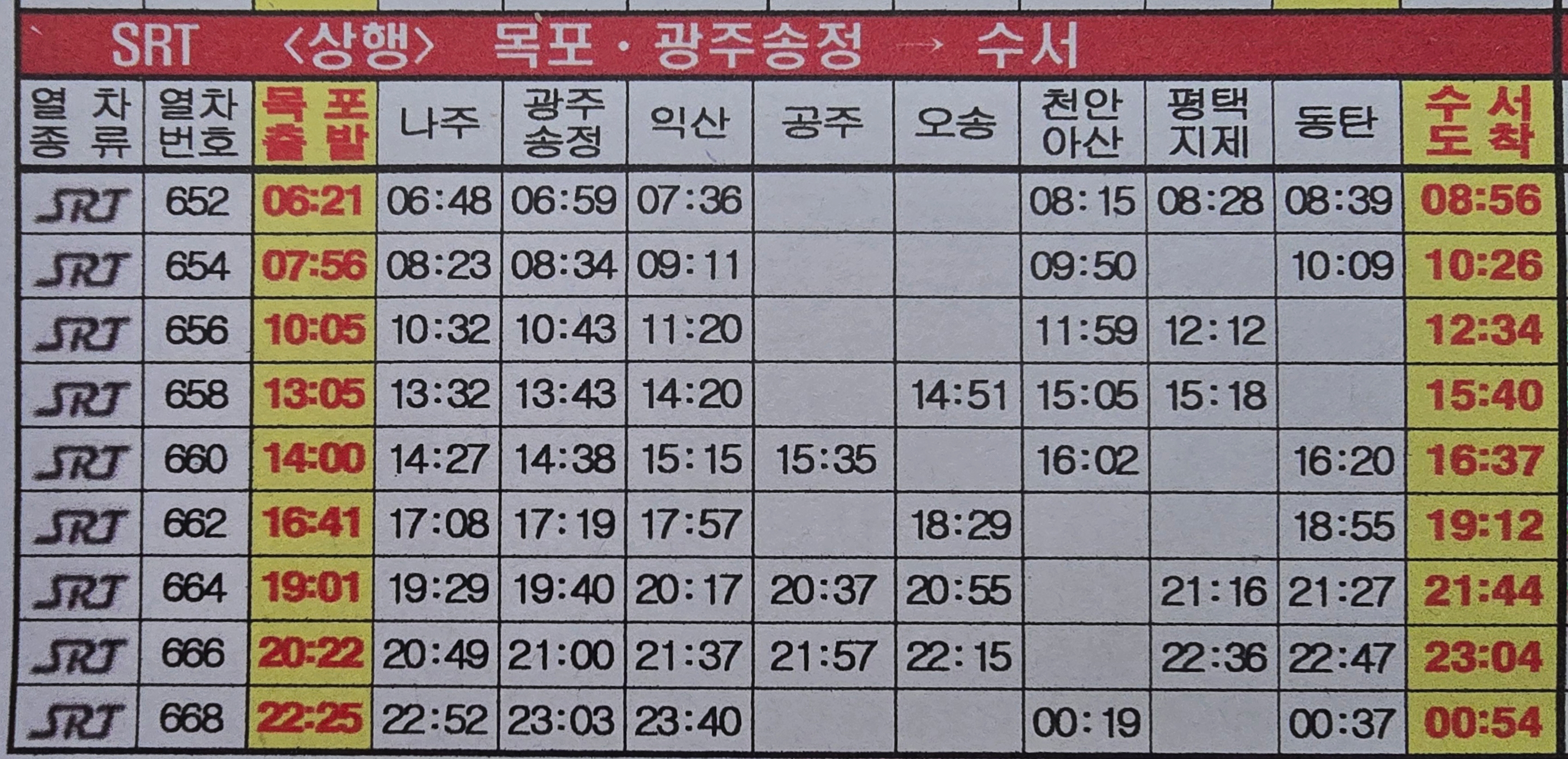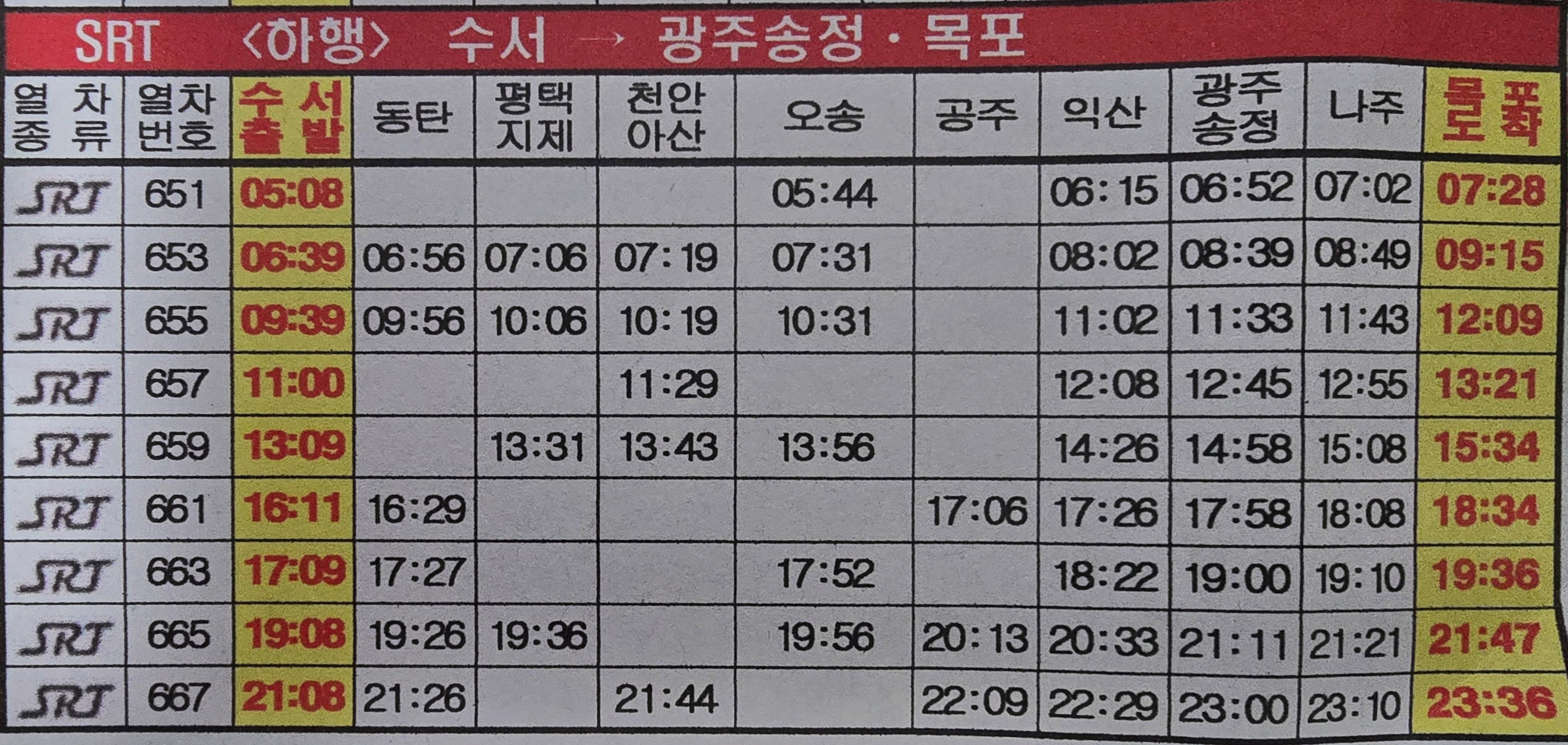 기차 시간표는 코레일이나 SR사정에 의하여 운행시간표가 변경될 수 있다.