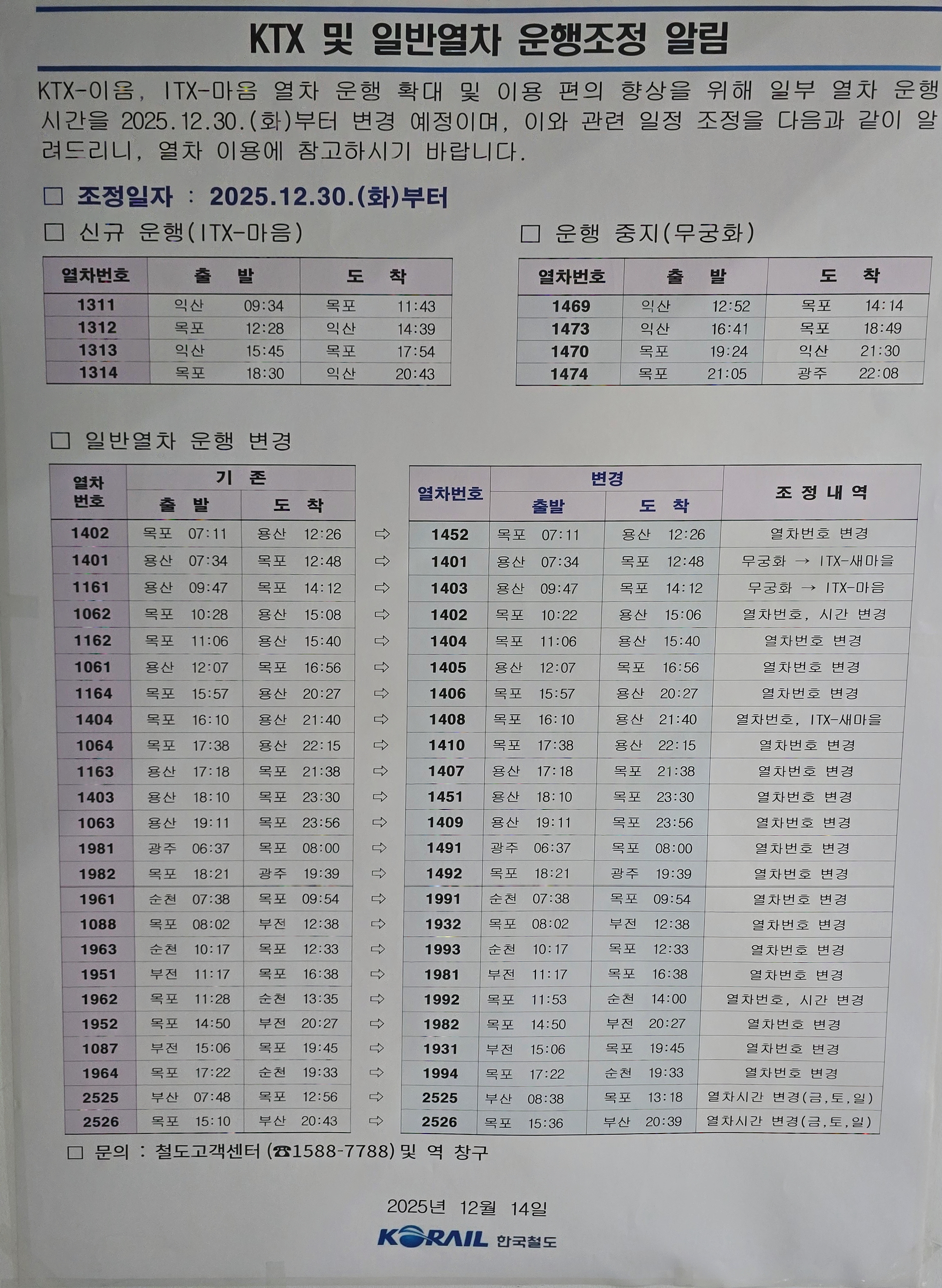 목포역 기차 운행관련 문의 전화는 1588-7788이다.
