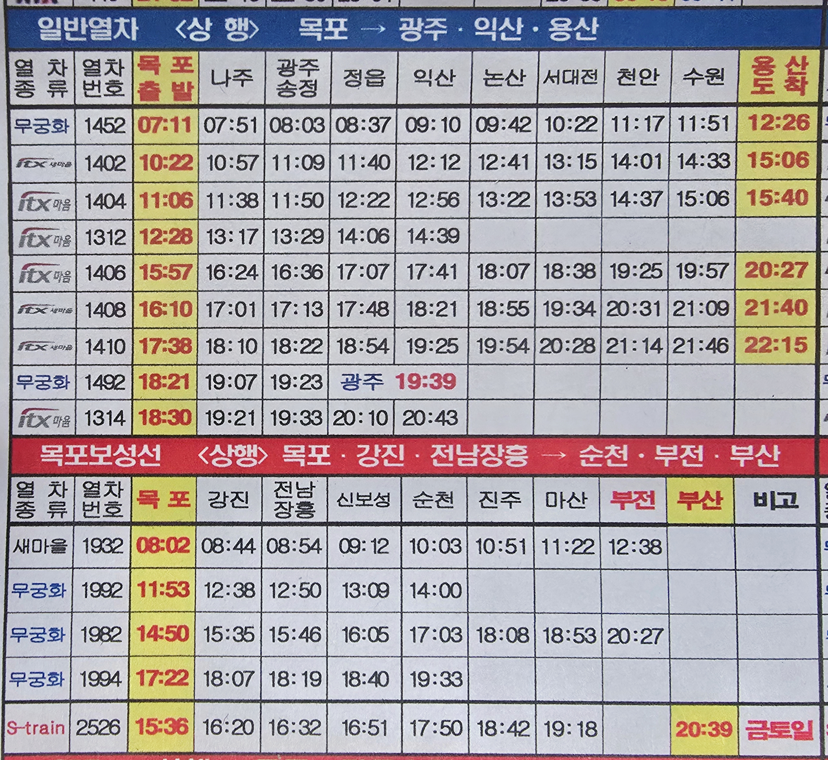 목포보성선 목포역에서 부전역가는 기차 시간표