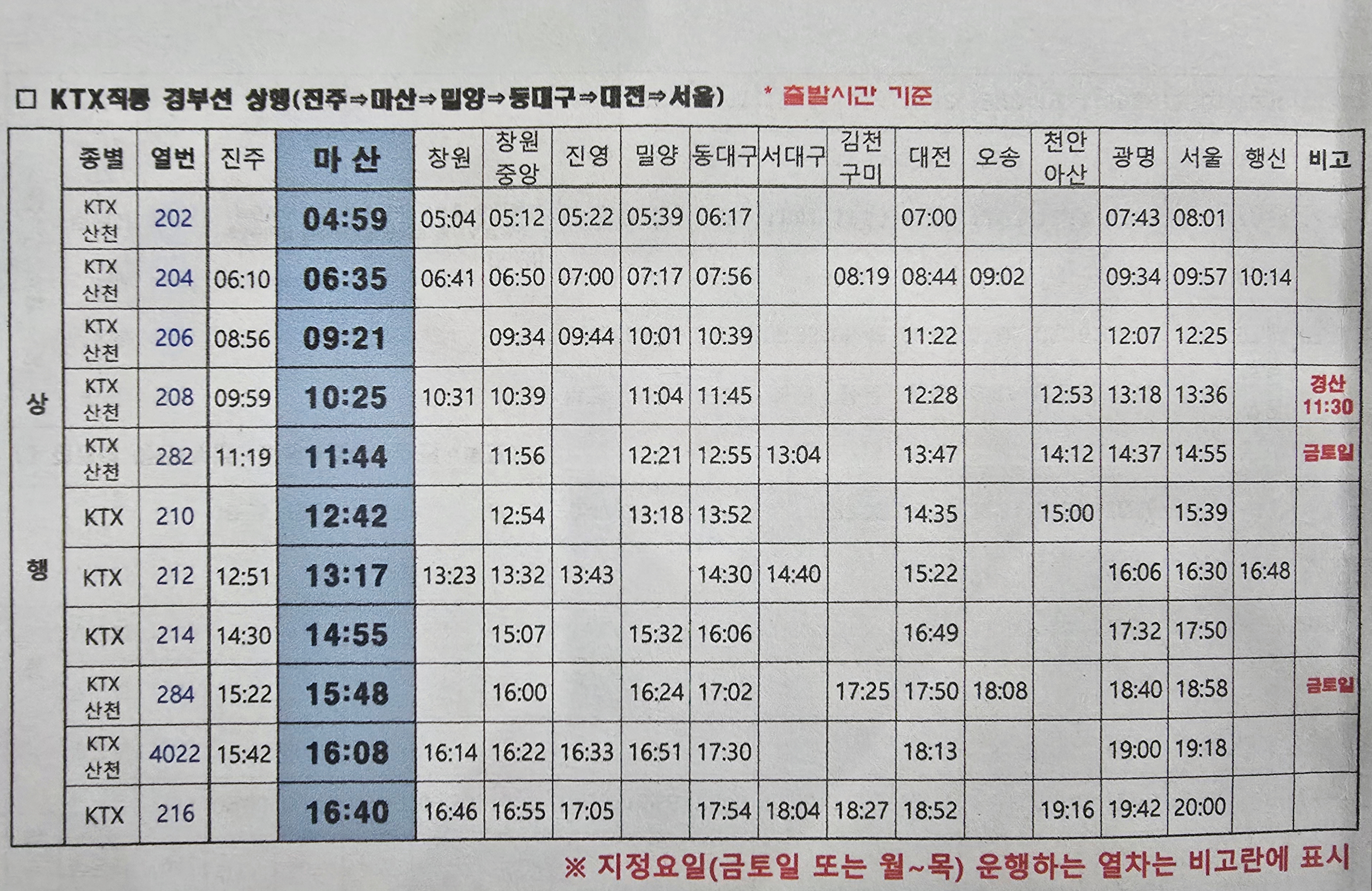 마산역에서 서울역가는 KTX
