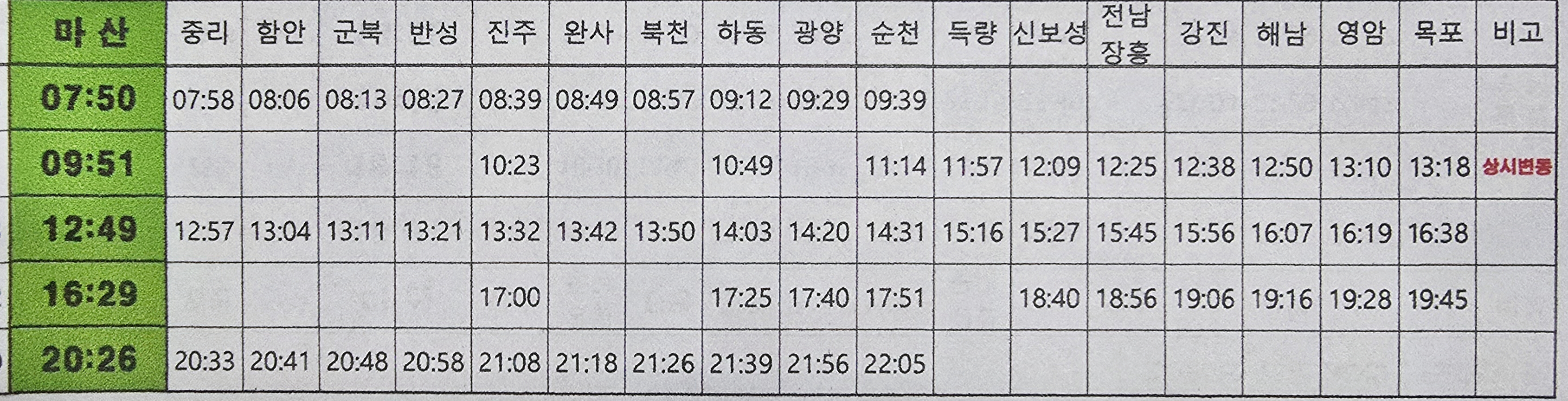 목포역 KTX 시간표 목포보성선