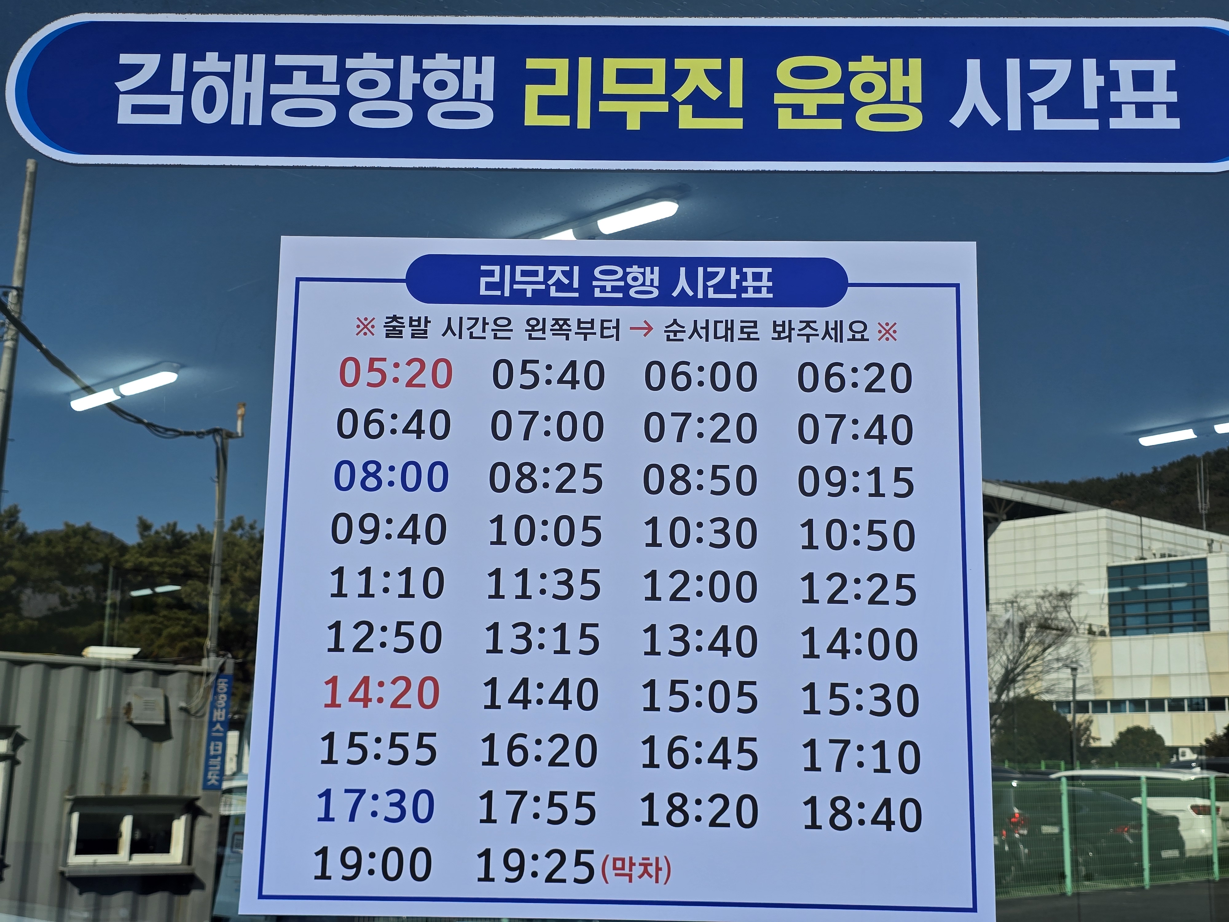 마산역 광장 앞에서 승차가 가능한 김해공항 방면 리무진 버스는 첫차가 05시20분,막차는 19시25분에 운행한다.
