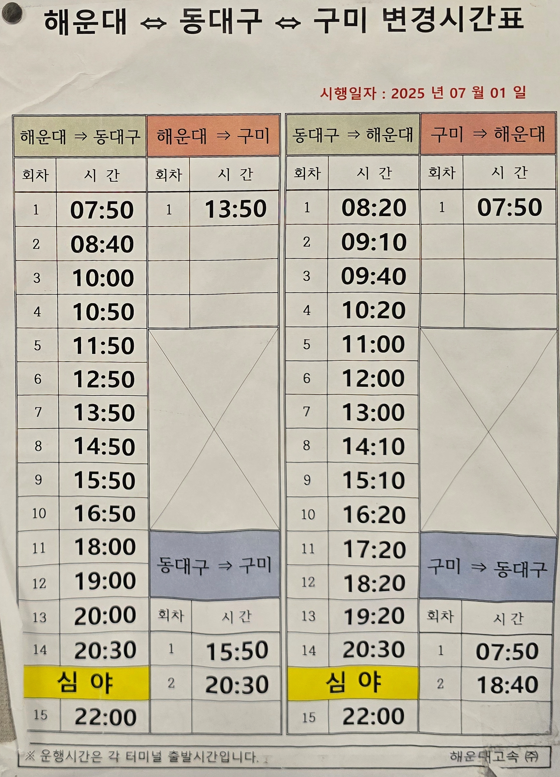 시외버스 시간표☜