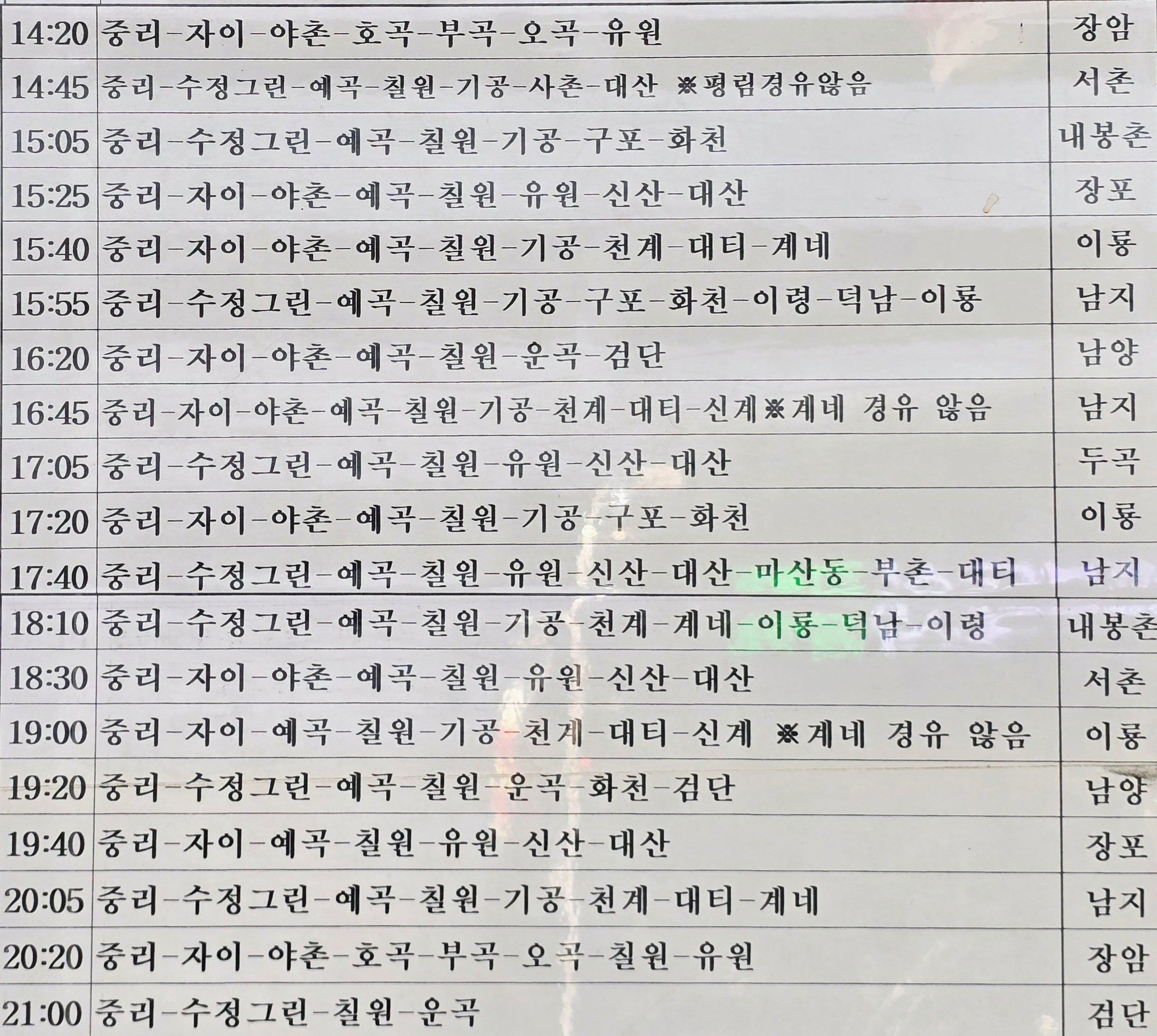 농어촌 버스 운행 시간표