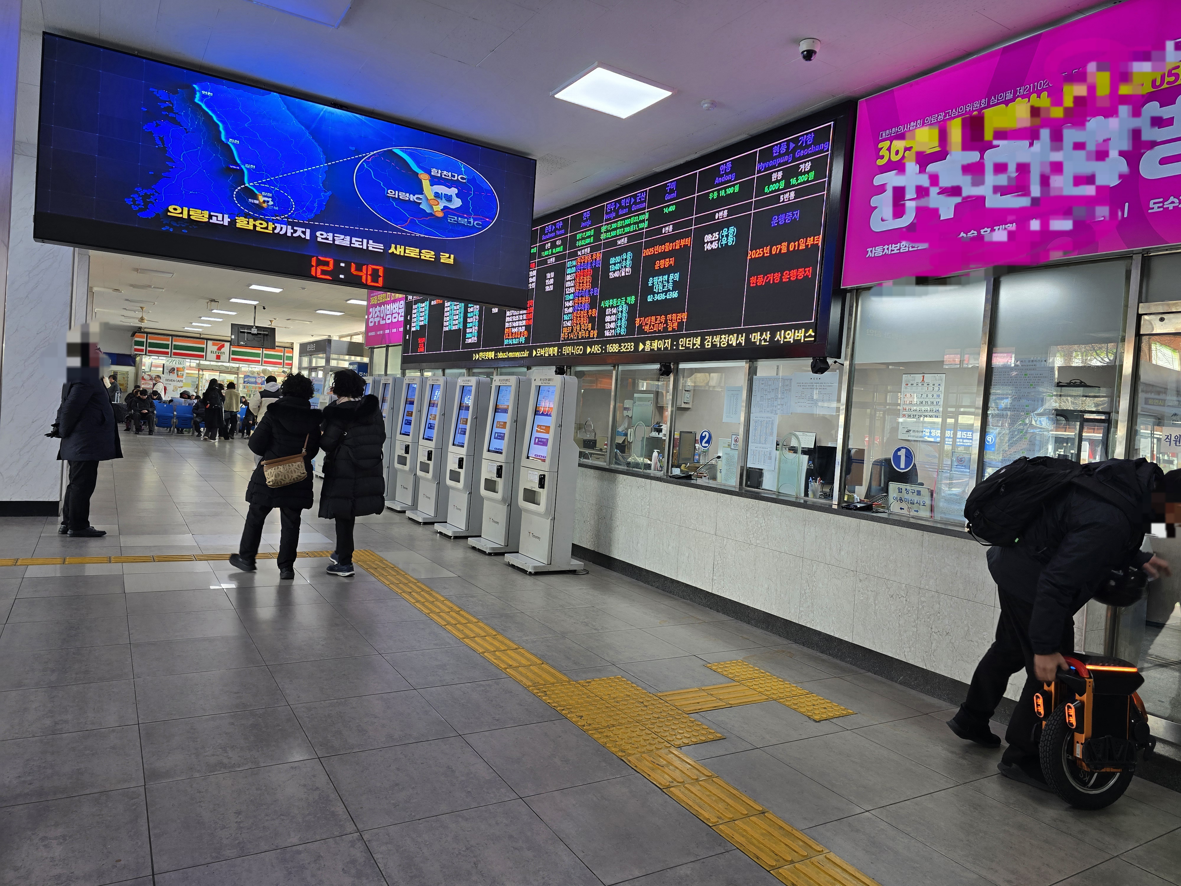 마산시외에서 대구서부가는 시외버스는 첫차가 07시,막차는 20시30분이 운행되는데 이 노선은 현장 구매 노선으로 선착순 비좌석제로 운행된다.