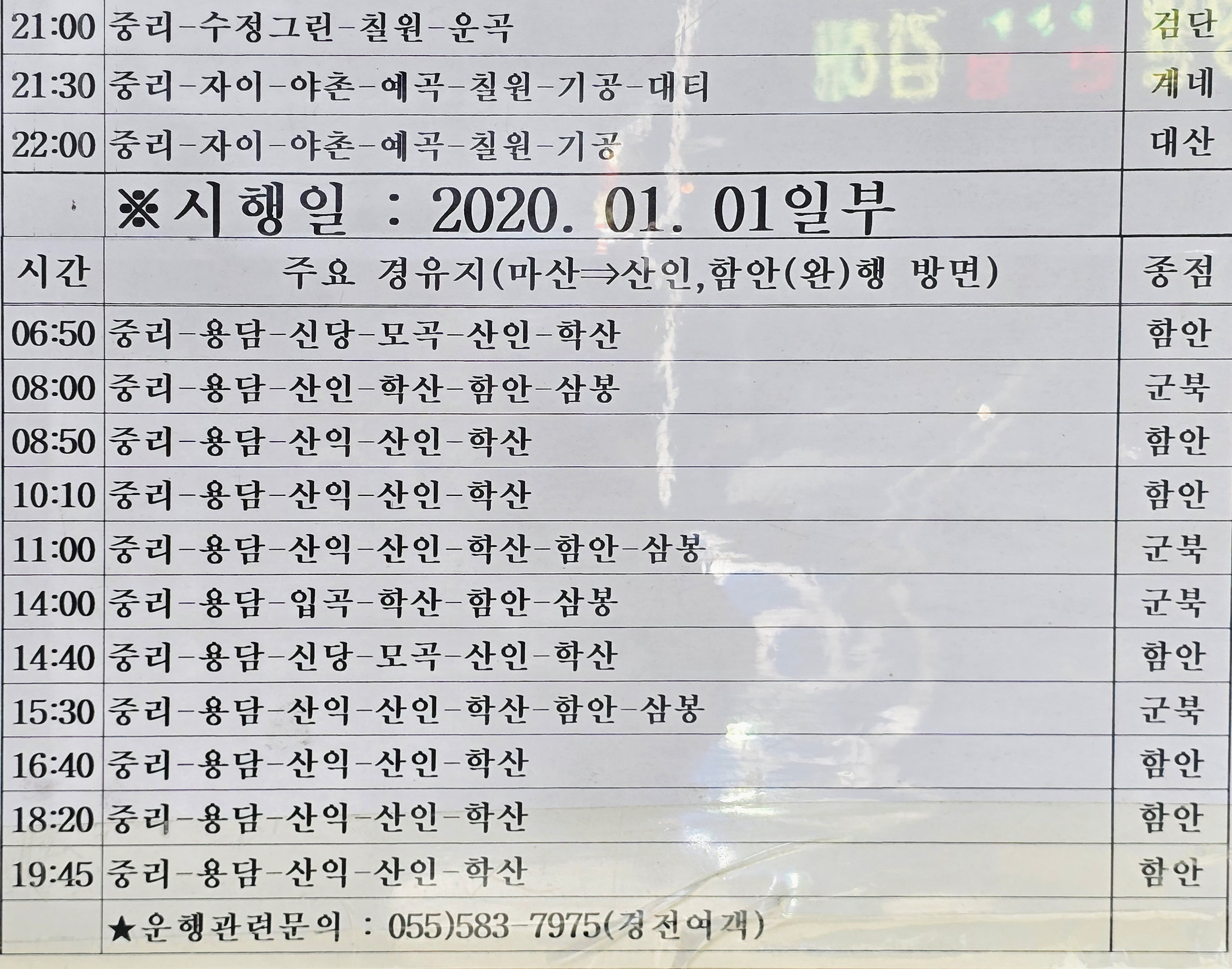 마산시외 심야버스 시간표